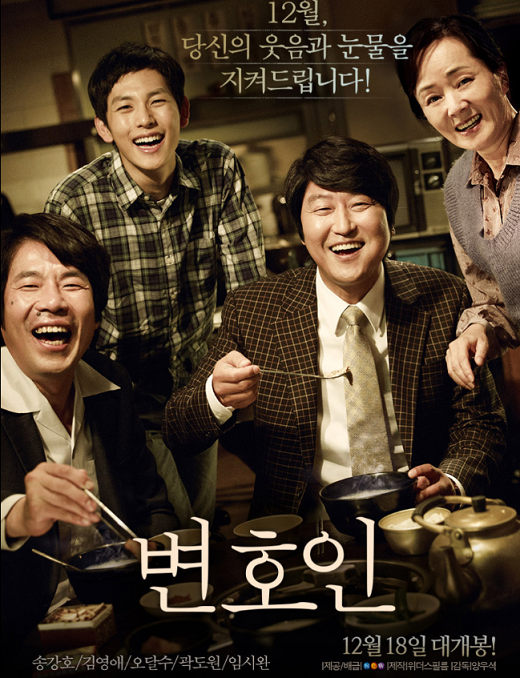- 송우석(송강호) 평범한 세무 전문 변호사에서 인권 변호사다. 악착같은 노력 끝에 변호사가 되어 부산에서 성공 가도를 달린다.